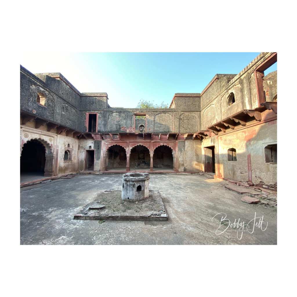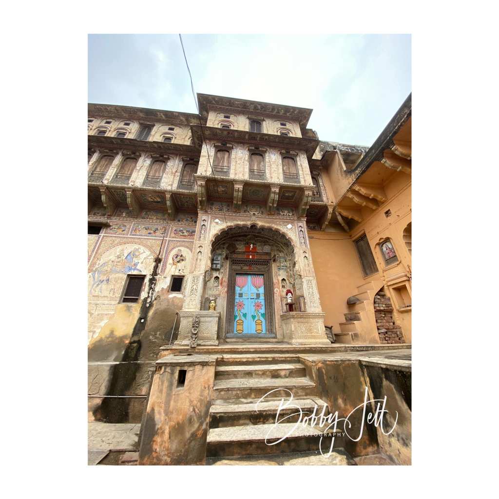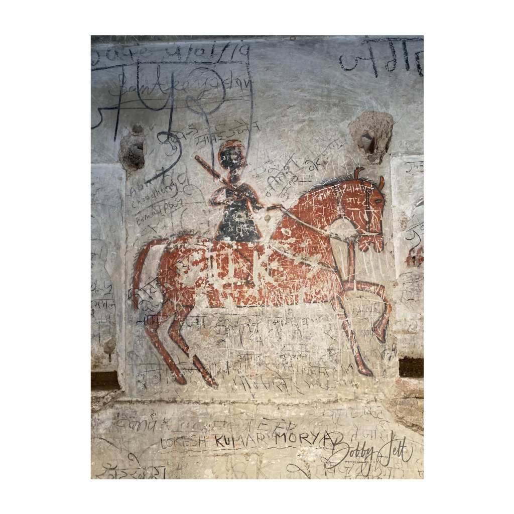 MANDAWA is located in the Shekhawati region of Rajasthan and is known for its many colorful havelis. I had a fantastic tour guide with the name of Om. He spent a half day with me exploring the small village with its many havelis. A few of the most colorful havelis were the Binsidhar Newatia and Murmuria havelis. Scores of havelis in this small village decorated their exterior and interior walls with hand painted scenes from their travels, and depictions of various guests who had passed through the walls. The havelis had three areas: the first was used as a business area to sell wares. This area was the most heavily decorated and served as a way to make an impression of guests and assure them of the success of the business. The second courtyard was used to house children and the elderly. There was also a large square open area in the middle of the second courtyard used to catch rainwater. The third courtyard, and highest in the haveli were used to house the owners of the house.